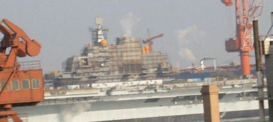 网上流传的在大连进行改装的瓦良格号航母最新图片,图中显示瓦良格动力舱已经开始在排气。 “中国航母”是很多外国媒体津津乐道的话题,一向标榜报道客观准确的他们,对“中国航母”的报道却有着不同的版本,尽管很多版本间多有矛盾之处,但每篇报道几乎都有一个十分确切的消息来源。当把这些报道组合到一起后,会是什么效果,请看—— “中国航母”数量 版本一: 香港[亚洲时报在线]7月23日刊登彼得-布朗的文章称,中国首艘航母有望于2010年底铺设龙骨,并在2014年左右列装。而且,解放军将建造两艘新瓦良格型航母,然后再建造2艘较大的核动力航母。此外,解放军其他消息人士还透露称,中方有意建造多达6艘航母。” 版本二: [俄罗斯世界武器贸易分析中心网站]:中国海军将会组建至少四支航母战斗群。 版本三: [产经新闻]援引军事问题专家平松茂雄的话说,苏联解体后,中国先后从俄罗斯购买了“明斯克”、“基辅”、“瓦良格”号等退役航母,并正式启动对航母的研发。中国将购买的“瓦良格”号航母修理好后作为练习用航母;然后根据修理经验再建造两艘中型航母(排水量4-6万吨),从而形成3艘航母的体制。 “中国航母”制造者 [路透社]:报道还称,解放军消息人士表示,中国以“瓦良格”号为蓝本,正在世界最大的造船厂——上海江南造船厂建造两艘纯国产航母。 首艘中国航母下水时间 版本一: 英国[路透社]12月23日报道援引消息人士的话称,中国在前苏联航母“瓦良格”号基础上建造完成的第一艘航母可能于明年下水,以庆祝建党90周年。 版本二: [俄罗斯世界武器贸易分析中心网站]12月21日报道,有中方消息人士透露称,中国将会在2015年完成首艘常规动力航空母舰(排水量在5-6万吨)的建造工作,而首艘核动力航母预计将会在2020年下水。 版本三: 英国[每日邮报]12月18日报道称,中国去年秘密启动航母建设项目,解放军海军首艘航母将于2015年下水,到2020年时,其将建立起庞大的航母 舰队。 中国航母(群)部署地点 版本一: [日本朝日新闻网]:海南岛最南端的三亚建造海军基地,该基地将部署核动力潜艇与航母 [香港亚洲时报]:中国首个航母战斗群将部署在海南岛,以加强南海地区巡航 版本二: [俄罗斯世界武器贸易分析中心网站]:中国海军将会组建至少四支航母战斗群,分别部署在南海和东海地区 关于中国航母舰载机 地点: 版本一: [日本经济新闻]:中国期待在巴西训练舰载机飞行员,中国设想在巴西航母上进行起落训练。 版本二: 加拿大[汉和防务评论]月刊透露,中国海军正在辽宁葫芦岛附近的兴城建设航母飞行员试飞中心。 版本三: [俄罗斯国际文传电讯社]:有消息称,中国的首批50名航母舰载战斗机飞行员目前正在大连的一所海军学院内接受培训并且将很快开始进行起飞训练。 版本四: 日本专家:有传言说中国将从俄罗斯购买苏—33舰载战机,中国已在乌克兰的海军航空训练中心培训飞行员。此外,中国从1987年以来一直在广州某海军学院培训航母舰长。 数量: 版本一: