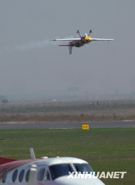 当日,2009中国国际通用航空大会在陕西西安和渭南两地开幕。大会共包括四项活动,分别为飞行表演与飞机静态展、通用航空高峰论坛、航空设备与器材展、航空项目签约。来自美国、加拿大、法国、英国、德国、奥地利、捷克、荷兰、日本、韩国等国家和地区的近30家通用航空企业和国内约100家企业参加展会。新华社记者丁海涛摄