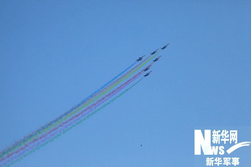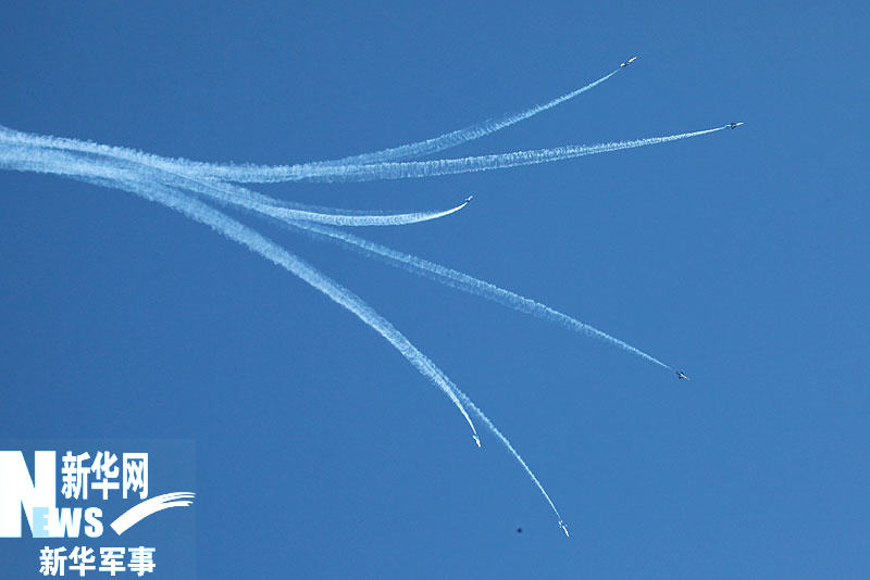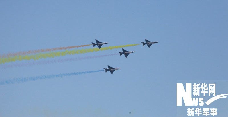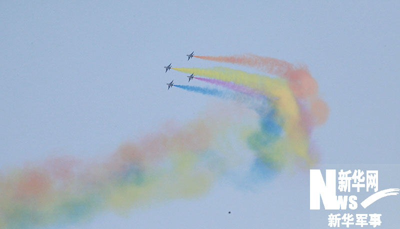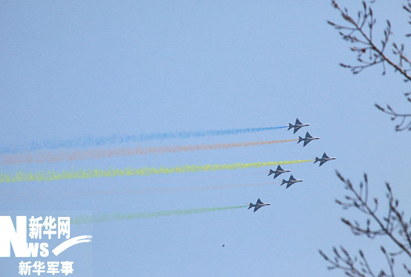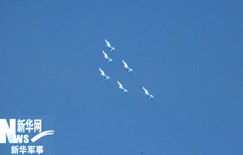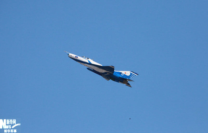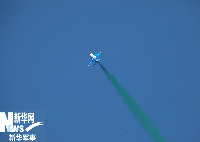 11月15日,庆祝中国空军成立60周年飞行和跳伞表演在沙河机场举行。图为歼-7GB飞机正在进行表演。