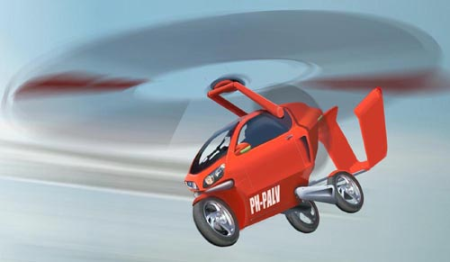 Sokol A400 其中一款是总部位于美国加州亨廷顿比奇市的先进飞行汽车公司(Advanced Flying Automobile)设计的Sokol A400。乍看上去,俯冲而下的线条和运动型外观,使A400倒像是一款新型跑车。打开引擎盖之后会进一步印证这一想法,因为你可以看到雪佛兰克尔维特发动机,它的速度可达每小时100英里。不过,只需轻摁按钮即可弹出伸缩机翼;后面的螺旋桨从车厢来出现;“扰流器”变成垂直稳定翼,延伸至整个汽车;最终,两个水平稳定翼会从后轮后面现身。 即便是詹姆斯·邦德,恐怕也会对拥有这样的飞车感到骄傲。AFA Sokol A400目前尚处于设计阶段,四分之一成比例模型正在测试之中。先进飞行汽车公司希望今后几年能够设计出实际大小的模型,如果可能的话,5年之内开始投入生产。消费者估计需花费30万至40万美元才能将这款飞车开回家。 2.美国:AirCar