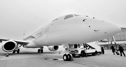 身价3.5亿顶级公务机成都“路演” 名为世袭1000 中途不加油能纽约直飞莫斯科 多位富豪表示感兴趣 为寻找买家,巴西航空工业公司昨日携最大型喷气公务机“世袭1000”成都巡游。此前,该飞机已在中国澳门和中国香港进行了短暂展示,而成都是其在中国内地巡游的第一站。 据了解,这架由98~114座的E-190商用机改造而成的公务机,沿袭了商用机的全部特点和优势,它比通常只能六七人乘坐的私人飞机长将近一倍,甚至比波音737客机还要长3米。 据巴西航空方面介绍,“世袭1000”是该公司旗下7款喷气公务机中最大的机型。这款飞机采用全球领先的电传操作系统,最大飞行速度达0.82马赫。 航程远也是该飞机最大的亮点。在符合相关规定的备份燃油条件下,“世袭1000”搭载8名乘客时的航程可达8149公里;按照这个里程来计算的话,不需要加油,“世袭1000”可从纽约直飞莫斯科。 “世袭1000”给客户提供了上百种内饰组合的方案,而价格目录显示,购买一款最基本配置的“世袭1000”需要5000万美元左右,约合人民币3.5亿元。 尽管费用昂贵,但“世袭1000”在全球已经有超过20个订单客户。目前四川已有多位富豪成为该公司的意向客户。 编译/王进雨记者林晨音 机内卫生间比普通航班大二到三倍 该机内设有5个私密空间、2个洗手间和1个站立式淋浴室,机上可供选装的项目有无线保真(Wi-Fi)技术、互联网接入和电子飞行包(EFB) |