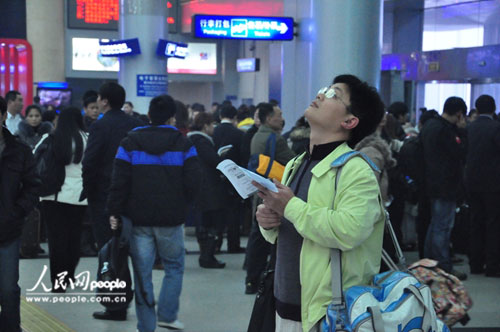 乘客观看航班时刻表期盼飞机