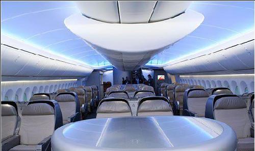747-8采用了许多787梦想飞机的内饰功能,如新的弧形拱顶结构,既可以使乘客感觉更加宽敞舒适,又增加了个人物品的放置空间。配合内饰结构的变化,747-8还采用了新的照明技术,为乘客创造出明亮通透的视觉效果,同时还可以通过柔和的亮度调节系统来制造更宁静怡人的环境。