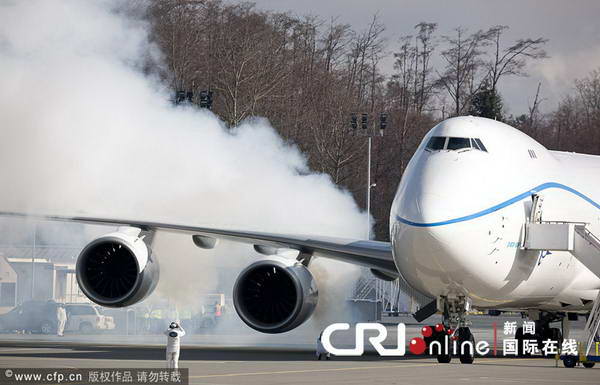 2010年2月8日,美国华盛顿州Everett,波音747-8喷气式客机当日进行首次试飞。