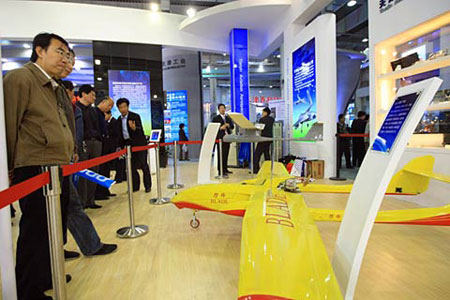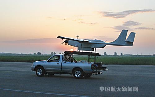 由中国航天科技集团公司九院研制的某型号无人机 前不久,由中国航天科技集团公司九院研制的某型号无人机系统产品顺利完成了交付验收飞行试验,并通过了用户单位组织的系统验收评审。这标志着该院在无人机系统设计、制造、试飞、管理等方面初步构建了完整的产品开发产业链,在无人机系统项目产业化发展道路上迈出了可喜的第一步。 同心同德抢进度 该无人机系统由九院无人机办公室承担系统总体,与该院8家辖属单位共同研制完成。该系统性能要求高、技术难度大、时间紧、任务重,研制队伍按日排定工作计划,放弃了所有节假日,栉风沐雨、夜以继日地工作。自2008年6月起,研制队伍在仅仅一年半的时间内就完成了全系统方案论证、产品研制配套、用户使用试验和交付验收飞行试验等工作,共组织完成了17个场次的飞行试验。 2008年6月,在与客户正式签订研制合同后,该院立即组织召开了总体与配套单位厂所级领导动员会,构建了以厂所总师担任分系统负责人、骨干人员担当主力的研制队伍。在院研究开发部、科研生产部的指导下,各厂所为该系统的人员、物资配套等方面提供了强有力的保障。 在相关部门的大力支持下,研制队伍迅速投入到该系统的方案论证、设计等工作之中。他们仅用3个月的时间,就完成了总体方案的设计工作,并通过了用户的评审。随即,该系统的研制攻坚战全面打响。 研制初期,为了制定合理可行的技术方案,研制队伍进行了无数次的论证、讨论以及多方案的比对,开展了大量的理论仿真工作。在研制过程中,该院所属各参研单位主管领导亲临一线,充分保障了各分系统研制工作的顺利完成。经过全院各参研单位的齐心协力、艰苦攻关,研制队伍仅用8个月的时间就顺利完成了产品的配套工作。