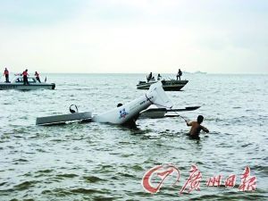 本报讯 (记者陈治家 通讯员陈刚、李树鹏摄影报道)11月5日,一架小型飞机在广东省珠海市进行试飞时不慎坠入海中。广东珠海公安边防支队官兵接警后第一时间赶赴现场展开救援,并最终成功将失事小型飞机打捞上岸,事故仅造成机上唯一一名飞行员受轻伤。