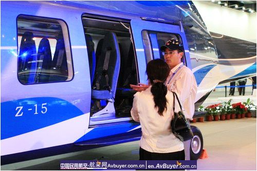 哈飞集团市场营销部李晓东副部长向观众介绍直升机性能 摄影:安利国