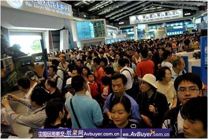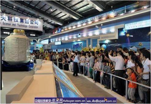 露天展场人潮涌动,展馆内更是摩肩接踵。观众争相在各种飞行器和武器面前留影。最火热的展台当数神舟-7号返回舱展位。前几天对专业观众采用全开放式参观,而开放日,为了保障安全,所有的展示区都用栏杆或彩带围了起来。即便如此,还是有不少观众直接扯开阻拦带,走进展示区拍照留念。也有人一些人无视标志着“禁止触摸“的展览物品,随意触动,这些行为让工作人员感到很头疼。
