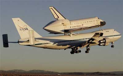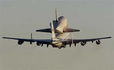 人民网12月11日讯 美国“奋进”号航天飞机10日从加利福尼亚启程,“骑”在在一架波音747大型货机背上,前往佛罗里达的肯尼迪航天中心的“老家”。由于佛罗里达天气不好,“奋进”号在结束了本次太空之旅后,只能备降在加州的爱德华兹空军基地。
