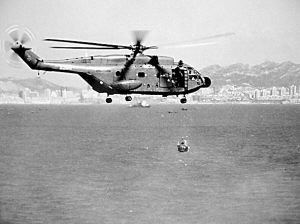 搜救直升机 直8舰载救护直升机可搭载15名伤病员及1名医护人员。1994年初,该机首次把手术台搬上了蓝天。图为该机参加奥运安保搜救演练。