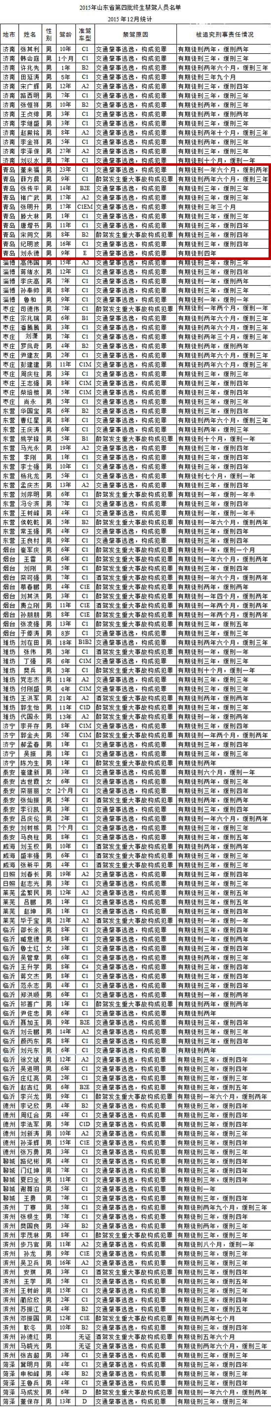 山东第四批终身禁驾人员名单曝光