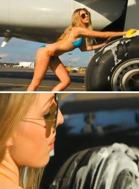 俄航公司拍性感广告揽客 半裸空姐洗飞机
