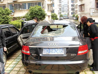 5月3日一早,家住乐园二区的陈先生到楼下开车,发现自己的奥迪汽车后挡风玻璃出现了一个大洞。车内一塌糊涂,坐椅上散落着黄砖及玻璃碎片,分明是遭贼了。再仔细搜索了一下,发现驾驶室内的零钱被偷。 |