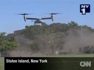5月31日,在庆祝一年一度的“舰队周”活动时,美国海军陆战队的一架MV-22鱼鹰垂直起降飞机在降落时产生的巨大气浪将现场的大量树枝吹断,同时10余人受伤。 美国媒体报道称,31日早8点MV-22在纽约丁香湖花园内的草坪上着陆时,因产生的巨大气浪吹断了大量树枝。同时,巨大的双引擎还将地面的尘土和石子吹向观众席。目前,有7人因被刮伤而送往医院,但其伤势并不严重。另有三人因伤势轻微而未入院治疗。 美国海军方面表示,其它庆祝活动还会按原计划进行。 |