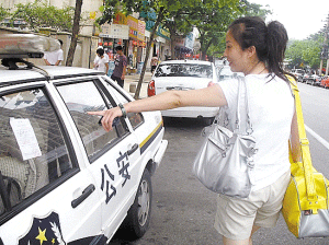 ![]() 杨东在给警车贴罚单