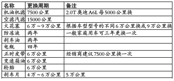 点评:奥迪A6L的2.0T车型厂家建议5000公里开始首保,2.4L和3.0L是7500公里进行首保。但如果一年不用,即使行驶里程为零也需保养。 根据车型型号的不同,奥迪火花塞的更换里程是6万公里或者是9万公里,经销商表示,有些奥迪的车主不管型号的差异,火花塞使用寿命还未到就要求更换,这纯属浪费。 奥迪A6L的电瓶是四年更换一次,不过汽修一厂技术科长许行宇先生表示,如果保养得很好,电瓶用6年也是不会出问题的。 奥迪A6L在平常保养过程中需要注意的是,每行驶2000公里或者是每用掉两箱机油时就必须检查机油液面,可能会出现机油液面低于下限。 上海大众POLO