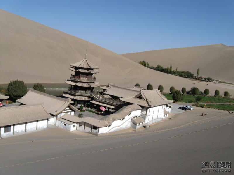 D6第7天了早上没吃早饭直奔莫高窟400公里一半高速一半省道路况相当不错快到敦煌时时吃了碗拉面。莫高窟为了保护文物里面不让照相,只能再外面照几张了门票有点贵160圆。中午在敦煌吃的当地小吃黄面驴肉,黄面一般带皮驴肉不错哦。下午看月牙泉门票120圆。找当地接待人员车直接开到月牙泉下节省了不少体力两个景点相距不远。晚上赶回酒泉住在部队招待所。环境一般,倒是没花钱。今天是最累的一天全天开了800多公里全是我自己完成,好在路况不错。