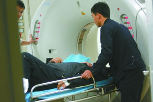 昨晚,军区总医院急诊室,伤者正在接受CT检查。当晚,建国门桥旁二环主路发生三车相撞事故,3人受伤。