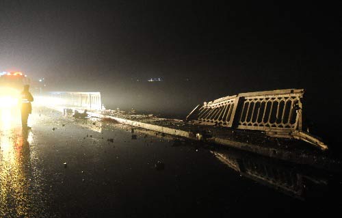 延伸阅读:生还者回忆 据正在医院治疗观察的黄延峰(音)介绍,他和女朋友是幸运者,当中巴车行驶到侯寨大桥时,发现车子来回摆动后坠入桥下,他和女朋友被甩在大桥上,当时他比较清醒,随即拨打了120电话。 |