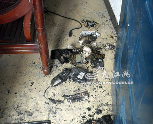 21日,记者来到西湖交警大队事故处理中队,看到一间门上挂有“事故受理接待室”的房间地面上满是烧焦的杂物,有手机、电台等等,一旁的电脑、打印机也被掀翻。该房的铝合金防盗窗被剪断,窗玻璃也没有了。