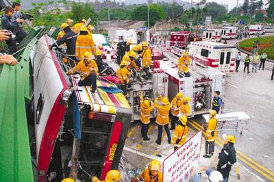 旅游巴当日在西贡公路南边围回旋处失事共酿19死43伤。 资料图片