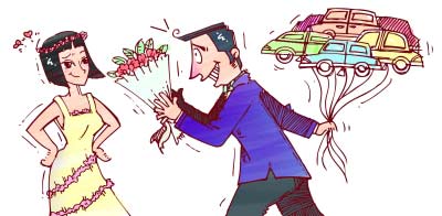 今年8月8日是个好日子,赶在这一天结婚办喜酒的新人特别多。这天上午,一个由奥迪、别克等豪华轿车组成的婚礼车队在南京城招摇过市,8辆婚车鱼贯进入某小区接新娘子,引得小区居民驻足观望。在这样的排场下,新娘杨俊一脸幸福的喜悦,女方家人也觉新郎官李文沙是个金龟婿,接亲搞得特有面子。