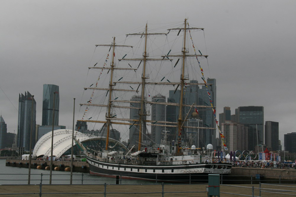 锣鼓敲起来、舞狮和武术表演轮番上阵……为了迎接远道而来的俄罗斯客人,我市在奥帆中心举行了富有中国传统韵味的盛大欢迎仪式。刚刚度过26岁“生日”的“帕拉达”号仿古大帆船是个名副其实的 “大家伙”,长108.6米,宽14米,高度达56.1米,曾到访35个国家、101个港口,航行距离超过459万海里。
