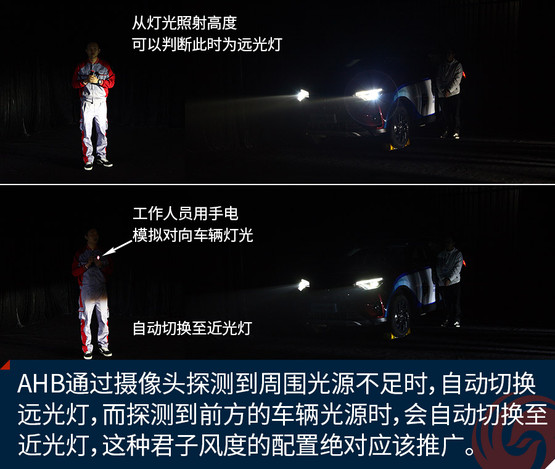 说到极致,丰田在安全技术开发方面的终极目标是交通事故“零伤亡”,也许在未来,自动驾驶技术是实现这一目标的理想手段之一,但在现阶段先进的主动安全技术效果更显著、更直接。于是,进化出了TSS,实践证明其在降低事故死亡率方面效果最明显。 在一整天的活动中,我们相继体会了以上四套系统。比如在一个模拟黑夜环境的房间内感受“自动调节远光灯系统”(AHB),工作人员用手电筒来模拟对向行驶车辆,搭载这一系统的RAV4荣放会自动从远光灯切换至近光灯,保障了别人的安全也是为了自己的安全。 “这个配置在中国应该全面普及!”这是每一个开过夜车的中国司机都感同身受的,不信你在百度里搜“远光狗”就知道大家多么痛恨滥用远光灯的行为了。不得不说,这种很君子风度的主动安全配置,必须要全面普及才行,否则君子会被小人干掉的。