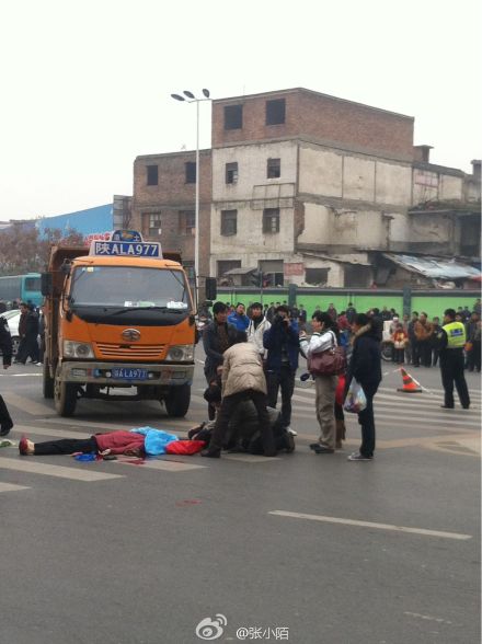 华商网讯 今天中午11点40分左右,在西安科技二路枫叶苑门口,一辆拉土车将一妇女撞倒,妇女当场死亡。肇事拉土车牌照为陕ALA977。死亡妇女大概五六十岁。肇事司机已被警察带走。 据本网记者现场播报,死者是在过斑马线时被拉土车撞倒。目前随后赶到的死者家属情绪激动。12:20分左右,120救护车赶到现场。 |