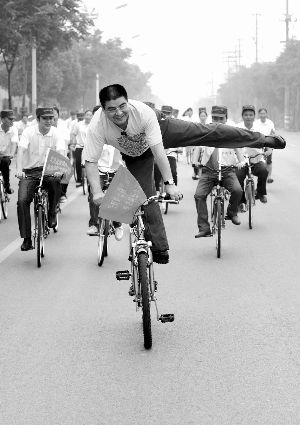 他为全体员工购置了200辆自行车,带着员工骑自行车上街头,呼吁宣传“大力发展公共交通,大力提倡低碳绿色出行”。为了鼓励员工低碳出行,陈光标宣布:员工骑自行车上班,路程在5公里之内的每月补贴300元,10公里之内的每月补贴600元。