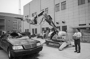 伴随着“忽忽忽”的声音,锋利坚韧的“机械手”毫不犹豫伸向下方的黑色奔驰,刺穿车身,砸破玻璃,随即将整个车子压扁……9月22日中国城市无车日即将来临之际,“中国首善”陈光标又火了一把。昨天,他在自己的公司提前过起了“员工无车日”,给员工发自行车,发骑车补贴;又亲手将自己一部还有3年才报废的奔驰当场销毁。